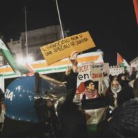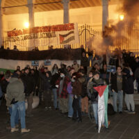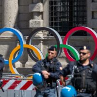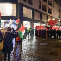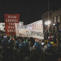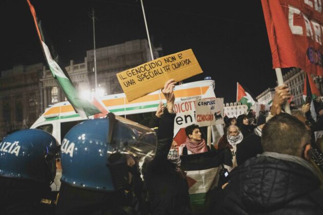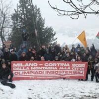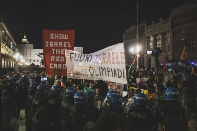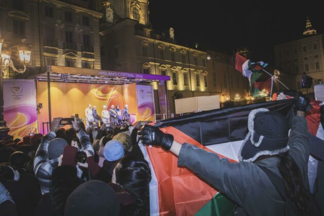 A Trieste le forze dell’ordine avevano uno spiegamento massiccio, ma non hanno dovuto entrare in azione. A Pordenone il sindaco aveva detto “non accetto che una giornata così importante venga rovinata da ideologismi e strumentalizzazioni”, invece i ragazzi ProPal si sono mossi con leggerezza, dando vita a una contestazione dolce. A Pavia il presidio ha invocato giustizia. A Padova rispetto per l’ambiente sfregiato dalle opere olimpiche. A Catania è stata denunciata l’industria bellica, che è perfino nell’elenco degli sponsor. A Torino si è lamentata la disuguaglianza che consente agli atleti israeliani di gareggiare. Altrove si è affermato che “i popoli non si cancellano con il genocidio” e che “durante le Olimpiadi si gioca, mentre altrove si continua a morire”.
