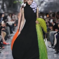 Con Jonathan Anderson, la couture Dior diventa una wunderkammer, una stanza delle meraviglie dove tutto è possibile. Non un museo, ma un luogo di sperimentazione continua. La natura è ovunque: fiori che scendono dal soffitto, conchiglie tradotte in silhouette, fauna e flora trasformate in costruzione sartoriale. Non decorazione, ma struttura. Anderson utilizza tessuti del XVIII secolo, li ricompone, li mette in dialogo con maglie tecniche, sete grezze, plissé estremi. Le forme nascono da un lavoro quasi antropologico sul volume: abiti che si attorcigliano, gonne che diventano bolle, silhouette che ricordano birilli, fiori, organismi marini. È una couture tattile, complessa, volutamente rischiosa. Il riferimento alla natura non è estetico ma concettuale: come la couture, anche la natura evolve, resiste, si trasforma. “È una forma di conoscenza in via di estinzione che sopravvive solo attraverso la pratica“, fa sapere la maison. Crearla significa proteggerla. Anderson non cerca neutralità – impossibile da Dior – ma innesta il suo linguaggio in una storia stratificata, accettando il confronto con chi lo ha preceduto. Il risultato è potente, a tratti spiazzante, e conferma che la couture è l’unico spazio dove la moda può ancora permettersi di perdersi: non a caso alla sfilata è presente anche John Galliano, storico direttore creativo della Maison che negli anni ’90 ha scritto una pagina di storia della moda con le sue creazioni ardite e fantasmagoriche, chiamato da Anderson a “bollinare” il suo lavoro, quasi volesse inserirsi nel solco da lui tracciato.