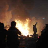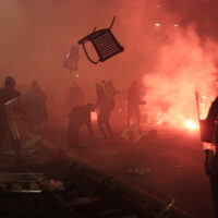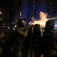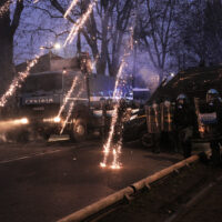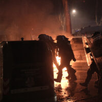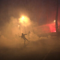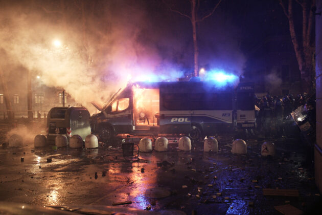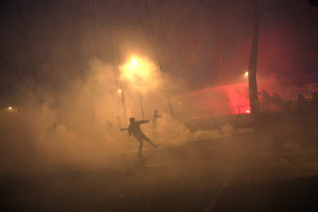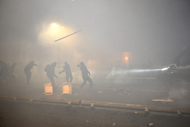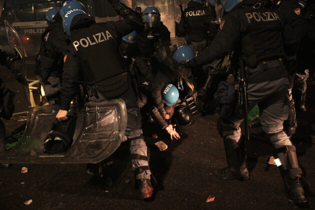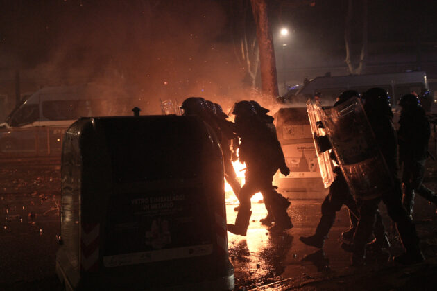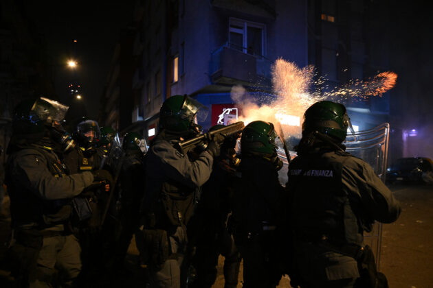 A provocare gli scontri, scrive l’Ansa, sono stati gruppi di autonomi e di anarchici: hanno iniziato a lanciare bombe carta e fuochi d’artificio contro le forze dell’ordine in corso Regina Margherita, dove al numero 47 c’era la sede del centro sociale, deviando dal percorso previsto. Manifestanti completamente coperti, testa e volto compresi: erano rimasti fermi prima a lungo, in attesa del buio, per evitare la ripresa dei loro volti da parte delle forze dell’ordine. La polizia ha risposto con i lacrimogeni, poi ha iniziato ad avanzare sia con il personale che con un idrante verso questa piccola parte del corteo, con l’intento di farla arretrare. Nel frattempo, le persone a volto coperto hanno dato fuoco a una serie di cassonetti. Dai dehors dei bar, chiusi, vengono lanciati in strada sedie e tavoli, per sbarrare la strada alle forze dell’ordine. In qualche caso le fiamme sono state particolarmente alte, ma sono state tutte spente. Nel frattempo un altro gruppo di antagonisti, oltre a quello entrato in corso Regina Margherita, si è staccato dal corteo principale per andare al Campus Einaudi, un campus universitario lungo il fiume Dora. I manifestanti hanno lanciato contro le forze dell’ordine dei fuochi d’artificio e la polizia ha risposto con lacrimogeni.
