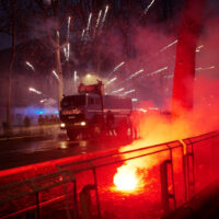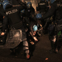 Gli scontri sono proseguiti per oltre un’ora, tra autonomi e anarchici che hanno lanciato molotov, razzi e oggetti contro le forze dell’ordine e ora hanno dato fuoco anche a un blindato della polizia, da cui gli agenti erano usciti e stanno lavorando per spegnere le fiamme. I manifestanti hanno portato nel centro del corso campane di raccolta dei rifiuti, sradicandole dal bordo della strada, così come carrelli della spesa. Poi, all’incirca verso le ore 19, i manifestanti sono stati spinti oltre la Dora. La polizia ha lanciato molti lacrimogeni per allontanare gli antagonisti sul lungo Dora. Il corteo è indietreggiato su via Rossini e la manifestazione si è dispersa su più fronti.