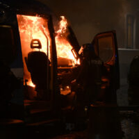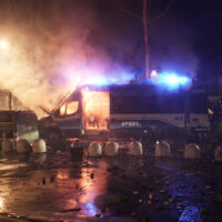 Scontri dopo il corteo per Askatasuna: bombe carta, cassonetti in fiamme, a fuoco un blindato della polizia. Diversi agenti feriti