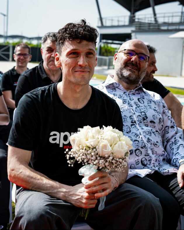 “Sono molto contento di aver rinnovato per altri due anni. Fin dal primo giorno in cui ho firmato avevo in mente l’obiettivo di costruire un progetto a lungo termine”, ha dichiarato Marco Bezzecchi dopo l’ufficialità del rinnovo, tornando “serio” post matrimonio. “Sono felice di aver trovato il supporto di tutto il team e di tutta la fabbrica a Noale. Spero di riuscire a regalare loro tante gioie, così come loro faranno sicuramente con me”.