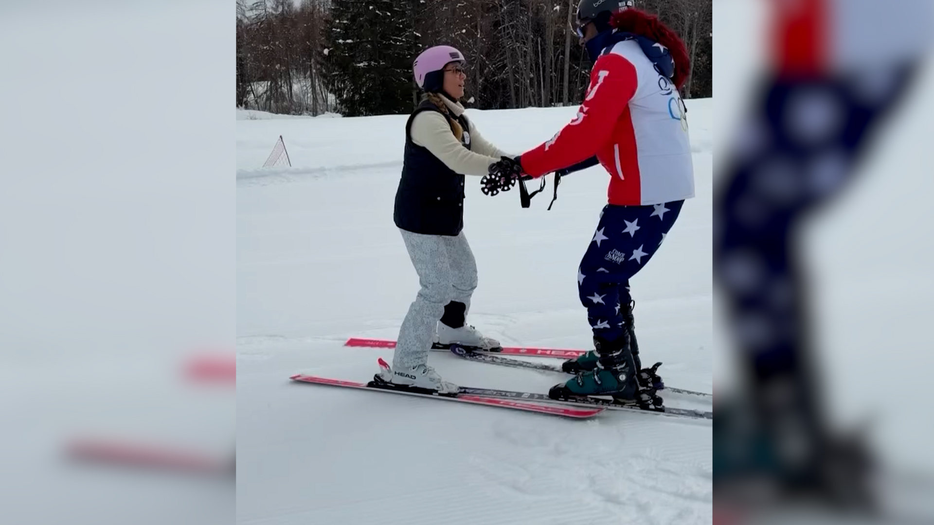 Il video ha fatto velocemente il giro del web: l’ex sciatrice lo prende per mano e, come si fa con gli sciatori inesperti, lo guida lungo una piccola discesa a Cortina.