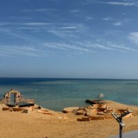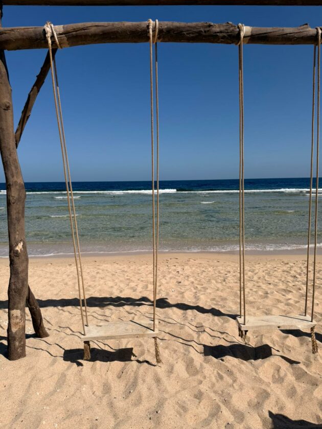 La strada dall’aeroporto verso il resort è una di quelle sequenze che restano nella memoria perché sembrano un quadro. Incollati al finestrino del transfer, guardiamo scorrere un panorama che sembra dipinto da un artista ossessionato dalle fasce cromatiche. Non c’è nulla di superfluo, solo l’essenziale bellezza della natura. Sulla destra scorre il giallo dorato del deserto, roccioso e fiero, che brilla sotto il sole in modo quasi abbagliante, punteggiato da sfumature ocra e terra bruciata. Poi, lo sguardo scivola verso sinistra e incontra il primo strato di mare: un verde cristallino, quasi smeraldo, che tradisce la presenza della vita sottomarina e della barriera corallina a pelo d’acqua. Subito dopo, il verde cede il passo al blu profondo, cobalto, intenso del Mar Rosso, che si estende fino all’orizzonte dove si fonde con l’azzurro limpido e terso del cielo. Bastano pochi chilometri su questa lingua di asfalto sospesa tra sabbia e acqua per sentire il corpo reagire: è il pieno di vitamina D che entra in circolo, le batterie che si ricaricano istantaneamente. Qui la luce non è solo un fenomeno atmosferico, è una terapia.