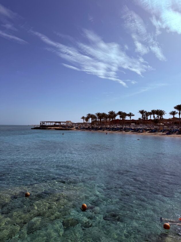 In questo contesto di rinascita turistica si inserisce la nostra “casa” per questi giorni: il Veraclub Vita Resort. Situato a circa 40 km dall’aeroporto, all’interno del complesso “Portofino“, il resort è la novità di punta del 2026 di Veratour ed è un’esclusiva per il mercato italiano. Appena varcata la soglia, si capisce perché questa struttura sia destinata a diventare un punto di riferimento. La posizione è strategica: sorge su uno dei punti mare più suggestivi della costa, abbracciato da una collina rocciosa che crea un anfiteatro naturale, proteggendo la baia dai venti che spesso spazzano il Mar Rosso. Questo dettaglio, apparentemente tecnico, ha grandi risvolti pratici: qui il mare è quasi sempre una tavola, accogliente anche quando altrove le bandiere rosse sventolano sulle spiagge. Il villaggio è un inno al comfort italiano in terra egiziana. La mattina ci si sveglia con i raggi del sole che sorge che filtrano dalle tende della stanza e quando si spalanca la finestra si viene inebriati dal profumo del mare che si staglia a pochi passi. Gli spazi sono ampi, i giardini curatissimi sono oasi verdi che contrastano con l’arido circostante. Per chi non riesce a stare fermo nemmeno in vacanza, c’è l’imbarazzo della scelta: due campi da padel (lo sport del momento è arrivato anche qui), tennis, beach volley, spa, una palestra attrezzata e persino una pista da running che circonda il perimetro del resort. Ma è l’acqua l’elemento dominante: numerose piscine, di cui due riscaldate (fondamentali nei mesi invernali) e un parco acquatico che fa la gioia dei più piccoli. E poi c’è il fattore umano, quel “Made in Italy” immateriale che Veratour esporta con successo: l’assistenza con il personale che parla italiano, l’animazione mai invadente ma sempre presente, e una cucina che sa mescolare i sapori speziati locali con la rassicurante tradizione della pasta, preparata come si deve.