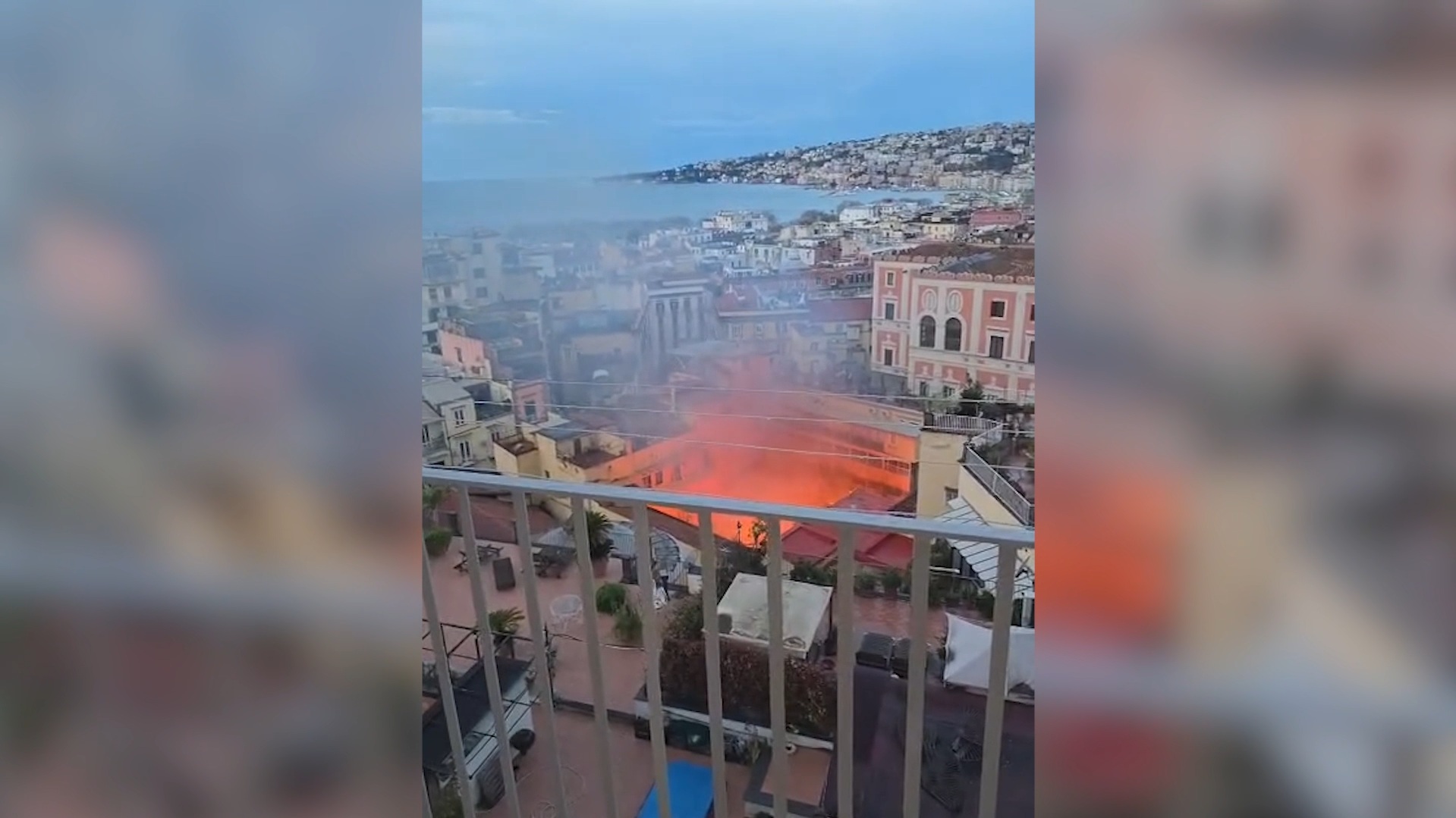 Il video mostra l’incendio in corso, nella mattinata di martedì 17 febbraio, all’interno del Teatro Sannazaro di Napoli. Da quanto si apprende, la cupola dell’edificio di via Chiaia è rimasta gravemente danneggiata, tanto che in parte è crollata.