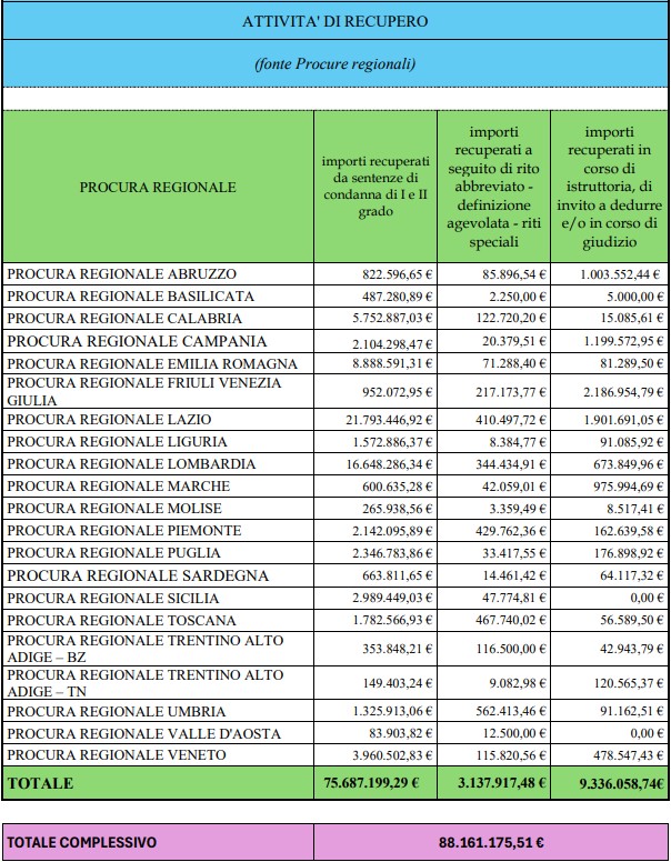 La Corte dei conti: “Nel 2025 recuperati 88,1 milioni. Dopo la riforma voluta dal governo i numeri saranno molto più bassi”