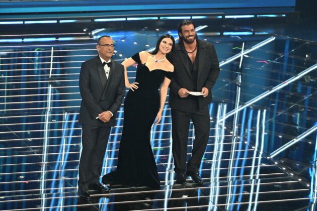 Chi si aspettava il classico “pinguino” in rigido smoking e papillon è rimasto deluso. D’altra parte, ve l’avevamo detto, ha lasciato definitivamente la carrira da avvocato e con essa i completi formali. Il divo turco, attesissimo primo co-conduttore maschile di questa edizione, snobba il protocollo dell’Ariston per restare fedele al proprio copione. Sceglie un abito da sera total black firmato dal designer Ilker Bilgi, portato con i primi bottoni della camicia slacciati per esibire il petto scolpito e l’abbronzatura d’ordinanza. Le battute sul suo fisico sono scontate, ma tant’è: pettorale che vince non si cambia.
