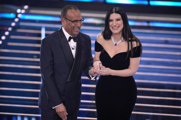 Gli occhi del bel Paese erano tutti puntati su di lei, Laura Pausini, la star italiana che l’America Latina ci invidia. E visto che ce la invidiate così tanto, potremo aprire un tavolo diplomatico tra Italia e America Latina e proporre uno scambio culturale: noi vi diamo la Pausini, voi ci mandate Bad Bunny. Se non fosse stato per gli abiti luccicanti e i gioielli da 50 carati, non avremmo nemmeno percepito la sua presenza sul palco dell’Ariston. Carlo Conti conduce e lei si fa spostare sul palco come l’asta del microfono, lui la percula per la pronuncia vagamente romagnola e lei risponde con agghiaccianti battutine sulla farfalla di Belen.