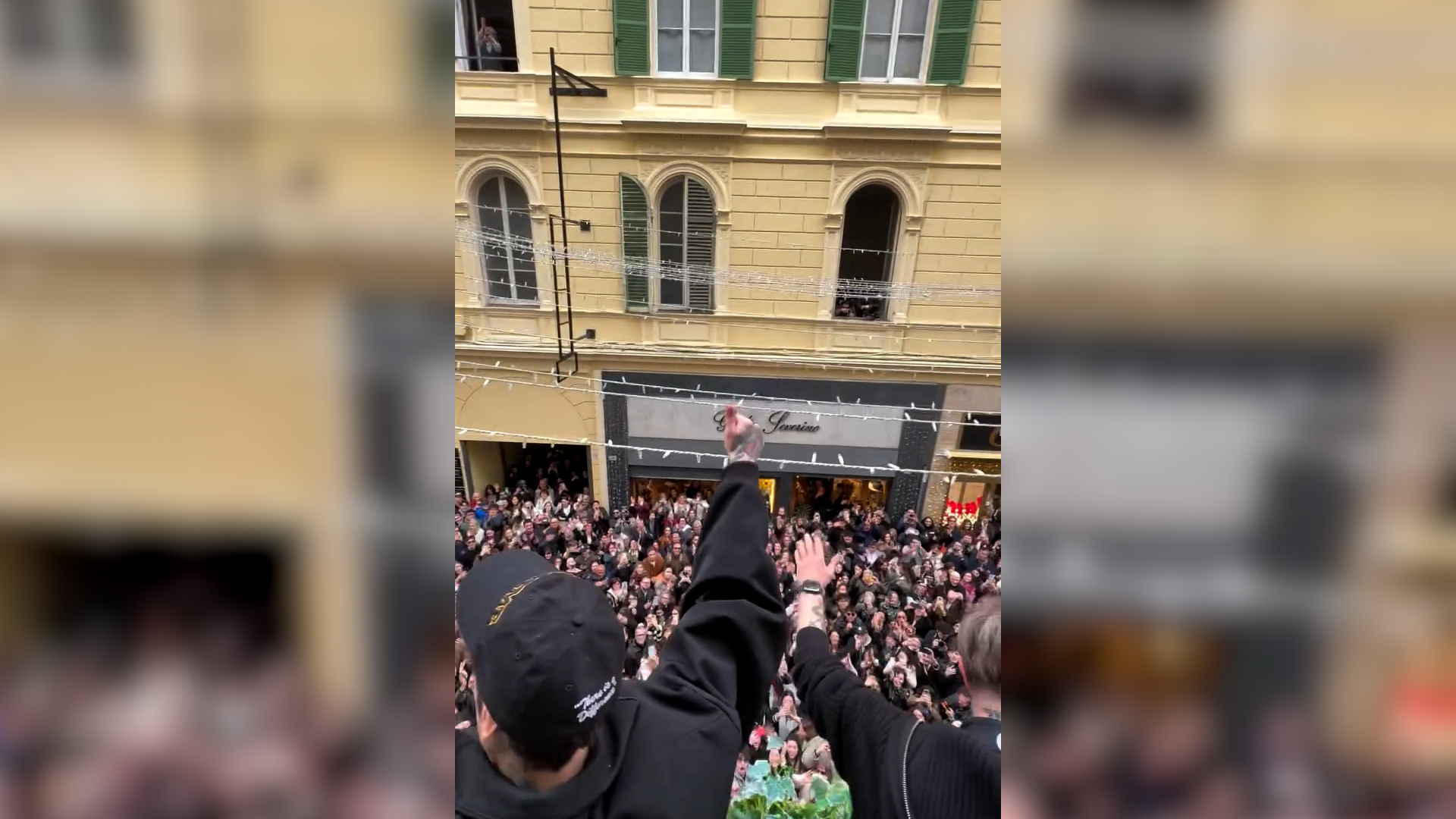 Folla in delirio per il duo Fedez-Masini, affacciati da un balcone sul corso principale di Sanremo, a pochi passi dall’Ariston. I fan hanno salutato gli artisti e cantato con loro il brano ‘Male necessario’, in gara al Festival, per la prima volta eseguito live al di fuori dell’Ariston. Fedez e Masini hanno ringraziato tutti per il supporto: “Buon Sanremo a tutt”, ha urlato Fedez prima di scattare alcune foto dall’alto con i presenti e poi rientrare. Nota di colore, tra le canzoni riprodotte prima che i due si affacciassero, anche il brano “Entriamo senza pagare”, di Fedez con J-ax, altro big in gara.