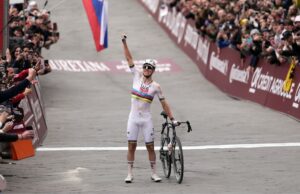 Terza vittoria del fuoriclasse sloveno a Siena: scatto decisivo a oltre 80 chilometri dall'arrivo. L'altra notizia di giornata è l'exploit del 19enne di Lione, capace di tenere dietro Del Toro e di arrivare a un minuto dal campione del mondo