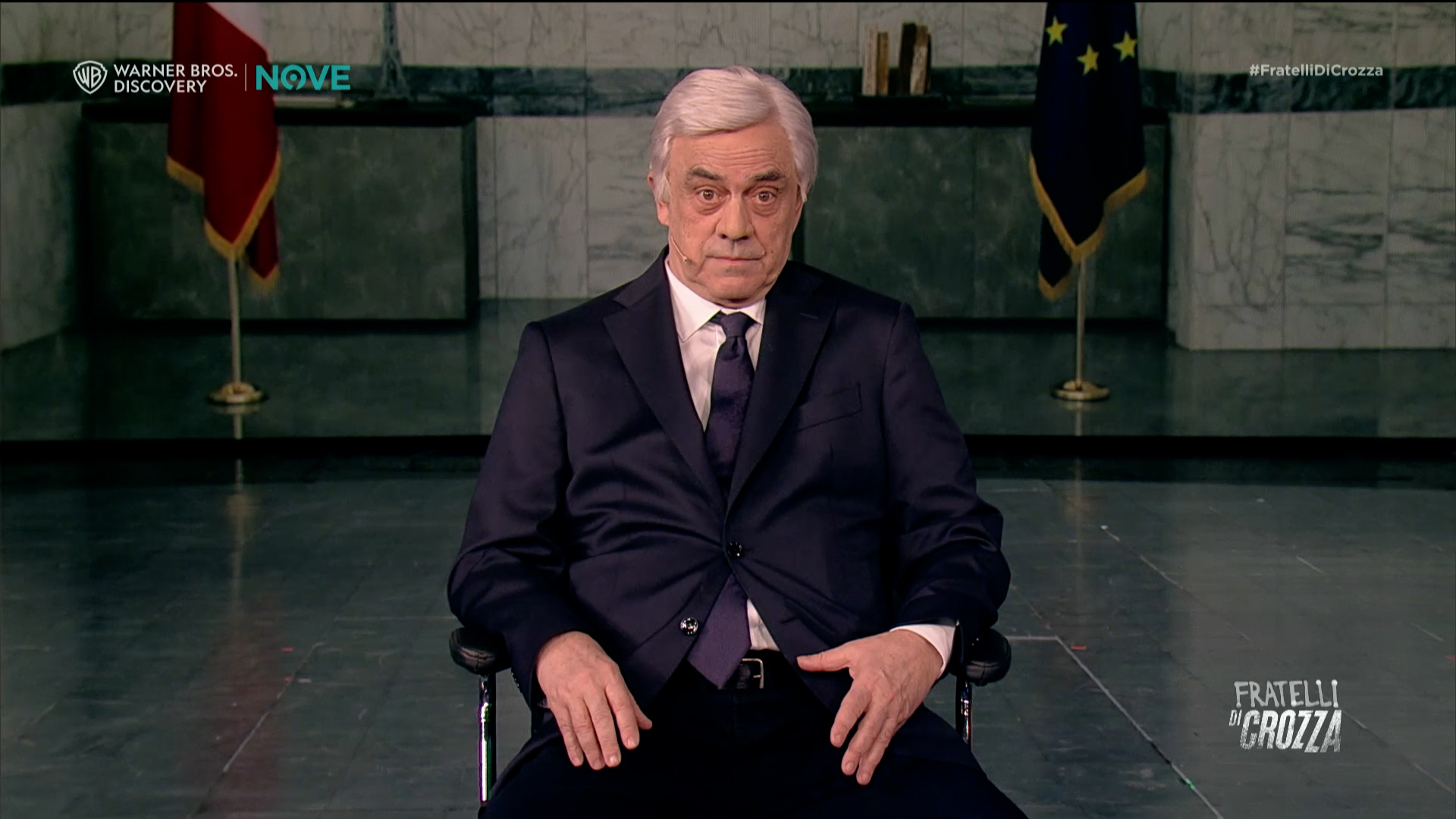 Nella seconda puntata della nuova stagione di Fratelli di Crozza, in onda il venerdì sera in prima serata sul Nove e in streaming su Discovery+, Maurizio Crozza torna nei panni del ministro Antonio Tajani che, convinto che la parola “basta” possa fermare i conflitti internazionali, si rivolge direttamente ai leader coinvolti, da Putin a Teheran, salvo poi scoprire che i suoi appelli non vengono sempre compresi.