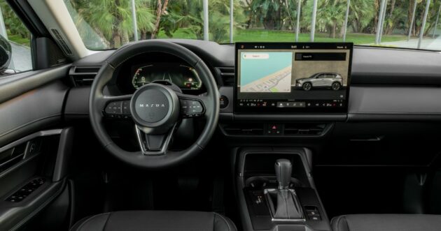 Gli evoluti interni includono materiali ricercati, un riposizionamento più ergonomico dei vari comandi e uno schermo centrale con una diagonale che può arrivare a 15.6” (base da 12.9”): il sistema multimediale connesso è più avanzato, integra Google e funziona in una maniera sviluppata per essere intuitiva e sovrapponibile a quegli degli smartphone. Come altri costruttori, anche Mazda ha deciso di permettere ai conducenti di intervenire sulle segnalazioni acustiche provenienti dai sistemi di assistenza: fino alla successiva accensione del motore, si possono disattivare premendo un pulsante che si trova sulla sinistra del volante.