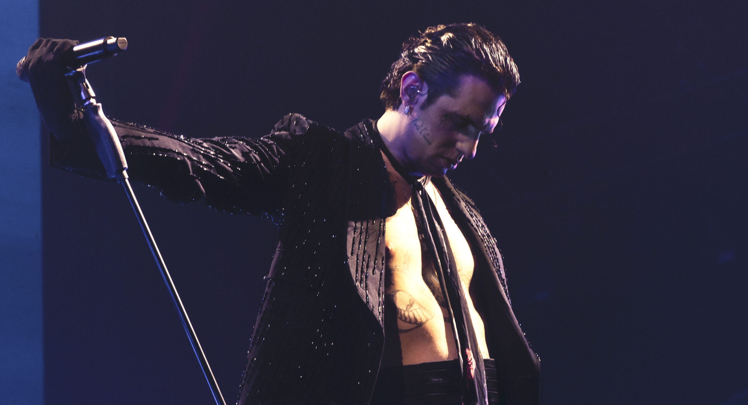 Ieri sera 16 marzo, Achille Lauro ha dato il via ai tre concerti (si replica stasera 17 marzo e poi il 27 marzo) . Lo show riprende a grandi linee ciò che è stato mostrato al Circo Massimo lo scorso giugno. Maxi schermo gigante con regia curata a riprendere non solo l’artista ma anche il pubblico. Sul palco con Achille Lauro, Boss Doms, Danien, Riccardo Castelli e Mattia Tedesco alle chitarre, Marco Lancs alla batteria, Gregorio Calculli al pianoforte e Nicola Iazzi al basso, oltre a un’orchestra di percussioni, archi, fiati, cori e alla presenza della cantante lirica Valentina Gargano.