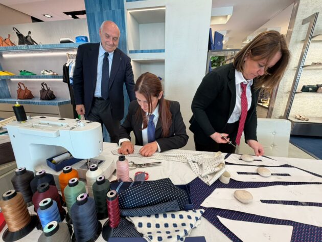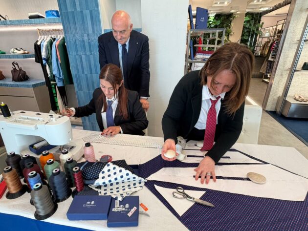 Venerdì 20 marzo, nella boutique Franz Kraler di Corso Italia, il gesto antico della sartoria prende forma davanti agli occhi del pubblico. Non è una dimostrazione costruita, ma un trasferimento reale: Marinella porta a Cortina le sue sarte, il suo metodo, il suo ritmo. Per capire cosa significa, bisogna tornare alla Riviera di Chiaia, a Napoli, dove nel 1914 nasce una bottega di pochi metri quadrati destinata a diventare un riferimento globale. Un luogo spesso descritto come un piccolo salotto inglese affacciato sul Golfo, dove la cravatta smette di essere accessorio e diventa misura. Sì, perché c’è un gesto, nella moda maschile, che resiste al tempo più di molti altri: annodare una cravatta, appunto. Non è solo un’abitudine, è un codice. E quando quel codice porta il nome di E. Marinella, assume un peso culturale preciso, quasi istituzionale. Nel tempo, quel gesto ha attraversato la politica e la finanza internazionale: John F. Kennedy, Bill Clinton, Gianni Agnelli, fino a capi di Stato contemporanei e membri delle monarchie europee. Non per ostentazione, ma per adesione a un codice.