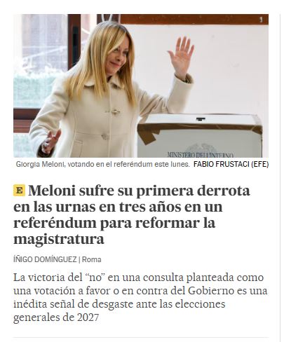 I media europei dedicano particolare rilievo all'esito della consultazione sulla giustizia: la chiave di lettura comune è che la presidente del Consiglio esca "indebolita" dalle urne