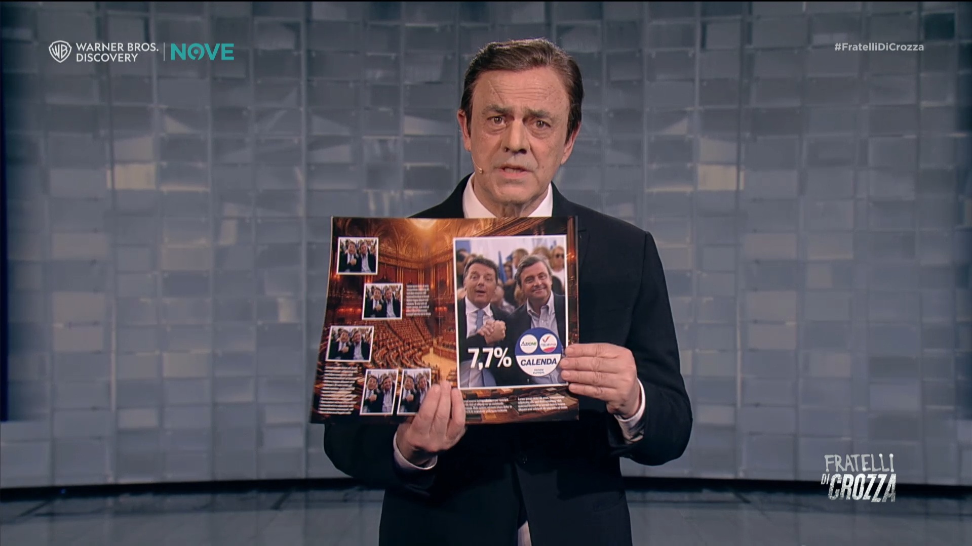 Nella nuova puntata di Fratelli di Crozza, in onda il venerdì sera in prima serata sul Nove e in streaming su Discovery+, Maurizio Crozza torna a vestire i panni di Carlo Calenda con la sua collezione orgogliosa di figurine di me**a: tutti i fallimenti politici accumulati in carriera, dalle Comunali di Roma al Terzo Polo con Renzi, fino al capolavoro delle Europee 2024.