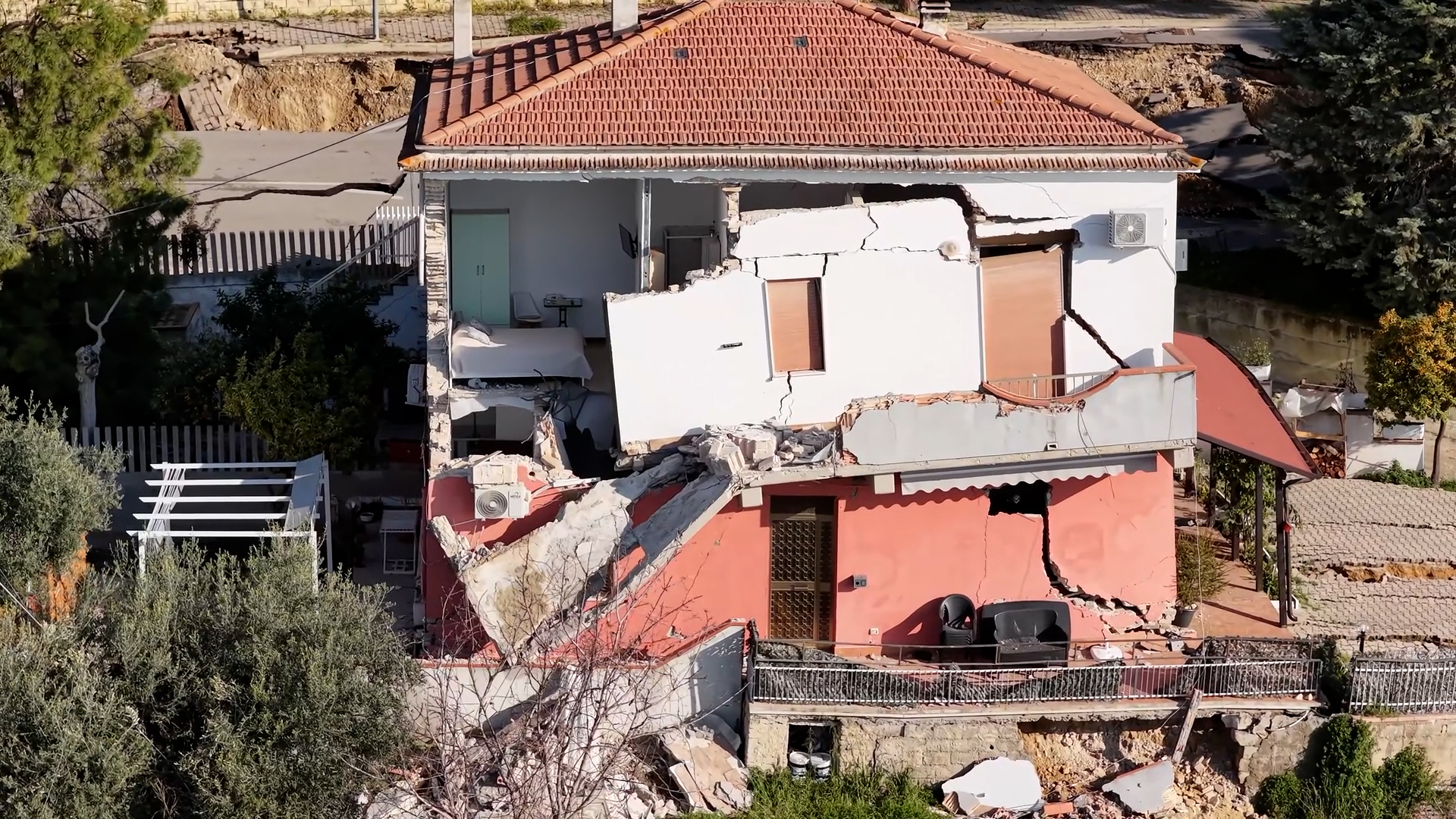 Un grande movimento franoso sta provocando il crollo di diversi edifici a Silvi, in provincia di Teramo. La frana avanza e nelle ultime ore ci sono stati crolli di abitazioni. Altre case rischiano di collassare da un momento all’altro. Ecco le immagini realizzate con il drone.
