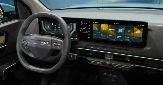 Guardandola da fuori, la EV2 gioca su un equilibrio curioso tra forme semplici e dettagli più ricercati, con una carrozzeria piuttosto compatta – poco più di quattro metri – che però riesce a trasmettere una certa solidità grazie alle proporzioni verticali e ai passaruota marcati. Il frontale è pulito, quasi minimalista, con fari full LED disposti in verticale e una firma luminosa che richiama il resto della gamma elettrica Kia. Dietro, invece, la scelta è più particolare: fanali bassi e molto laterali, portellone verticale e un piccolo spoiler che completa l’insieme.