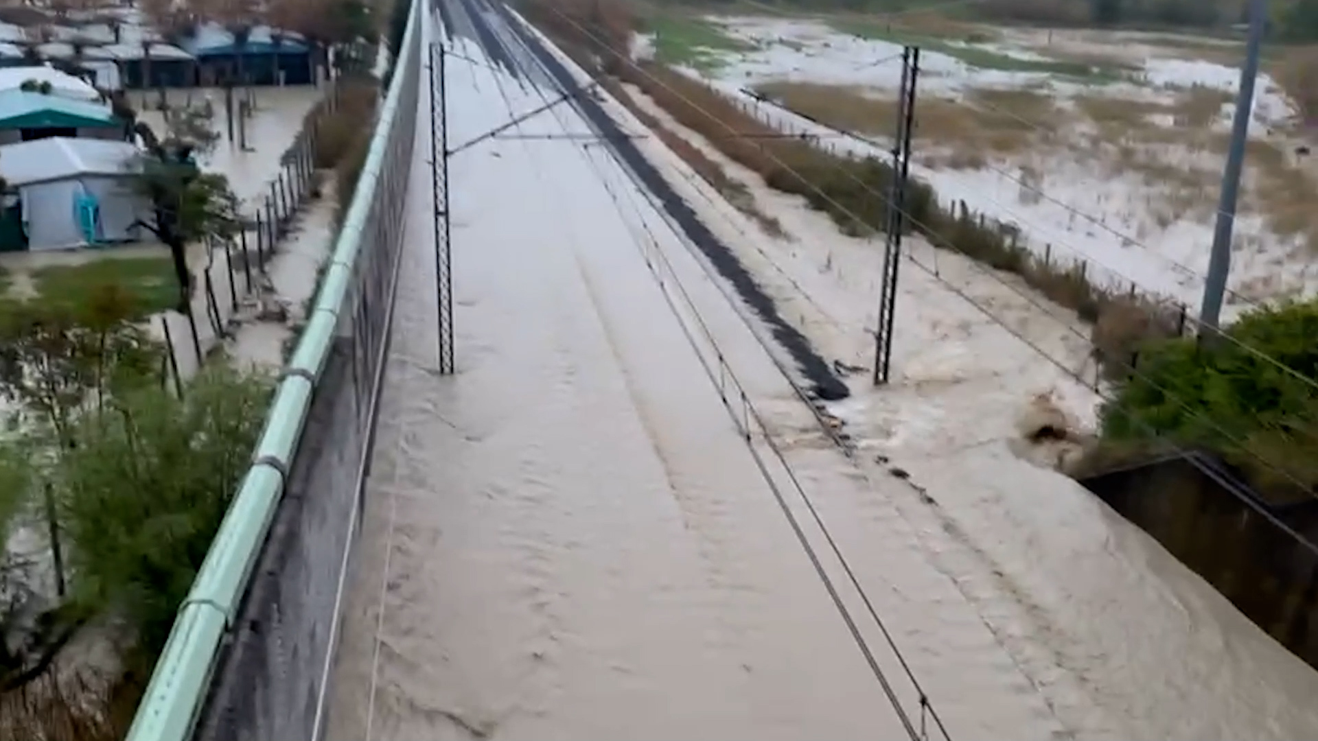 Italia divisa in due sulla costa Adriatica a causa dell’esondazione del fiume Osento, in Abruzzo, dopo l’ondata di maltempo che ha colpito la regione.