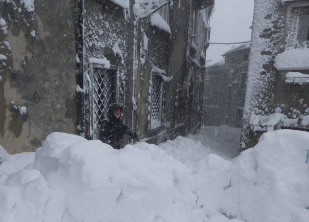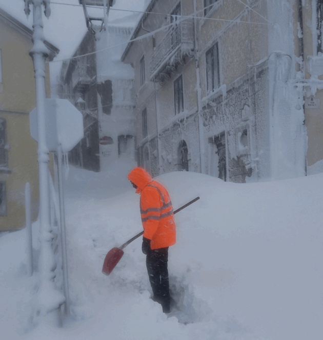 Dello stesso avviso è Fiorito, che una volta raggiunta la farmacia si concede qualche minuto per raccontare: “Qui la neve l’abbiamo vista anche ai primi di giugno, una volta, anche se mista ad acqua. Non ci spaventa, anzi: crea maggiore unione nella comunità. Stamattina, come ho fatto io con la farmacista, ci si aiuta tra vicini e parenti per superare i piccoli disagi”. Vivere qui è anche una missione, come conferma il primo cittadino, rieletto per ben sette volte e sindaco da oltre trent’anni: “Forse perché amministrare un piccolo comune non è da supereroi, anche se da fuori può sembrare. La neve qui è di casa, così come i disagi della montagna. Ma grazie alla coesione dei cittadini si supera tutto”. Poi aggiunge: “Sono appena stato a liberare dalla neve nonna Maria, 93 anni, che vive nella zona alta del paese. Qui la mattina ci contiamo un po’ tutti: una sorta di controllo sociale che ci fa vivere più sereni, perché sai che qualcuno chiederà di te”. E le emergenze vere? “Sono altre”, conclude il sindaco. “Non ci spaventa una nevicata di due metri. Siamo molto più preoccupati per il costo del riscaldamento. Senza piagnistei chiediamo sgravi: a differenza di altri, i termosifoni qui restano accesi anche oltre otto mesi l’anno. Quella sì che è un’emergenza”.