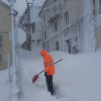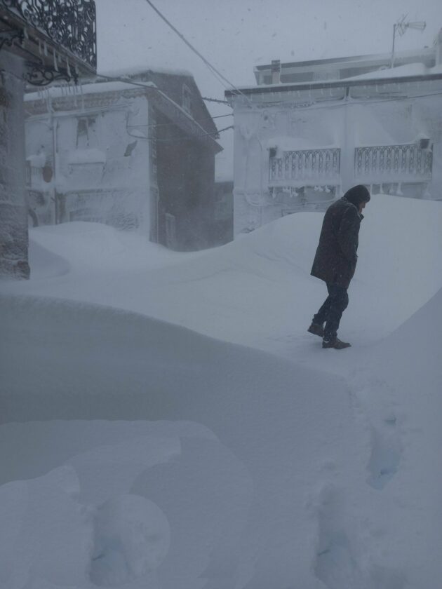 Pala in mano, combatte la sua battaglia quotidiana contro la neve per liberare un ingresso: “Devo aprire la farmacia. La farmacista tarderà per via delle strade bloccate, ma intanto garantiamo l’apertura, anche per la consegna dei farmaci”. Schiavi d’Abruzzo è così: un formicaio bianco, popolato da persone operose che non sembrano risentire né dell’emergenza né dei disagi. A confermarlo è anche Francesco Bottone, giornalista e direttore della testata locale ecoaltomolise.net, che da anni racconta la vita in questo angolo d’Italia spesso dimenticato: “Qui la neve, come altre calamità, non viene vissuta come un’emergenza, ma come parte della normalità”, spiega. “Siamo legati a questi luoghi e difendiamo questa scelta anche nella vita quotidiana. La vera resilienza sta proprio nei gesti semplici: vivere la montagna senza inseguire una routine fagocitante, prendersi il tempo per farsi strada nella neve, raggiungere il negozio di alimentari — che sai già troverai aperto — comprare un chilo di pane, ancora a buon prezzo, un pacco di pasta, scambiare due parole ricordando le nevicate storiche e poi tornare a casa, magari continuando a lavorare al computer in smart working”.