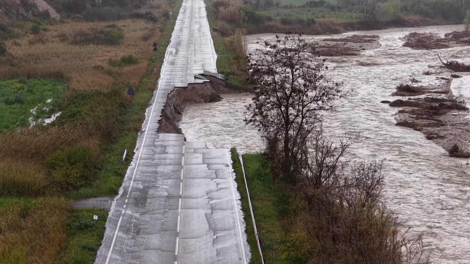 La furia del fiume cancella un tratto di strada in provincia di Chieti: il video dal drone