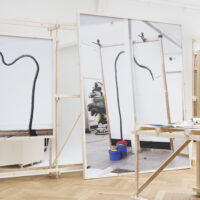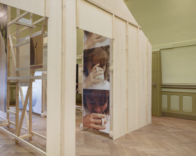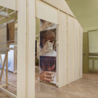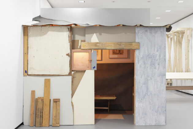 Nell’atelier ricostruito di Polli (tra immagini, regole condivise, frammenti di quotidianità intrecciati anche con la presenza di Sabine Hess), la mostra si avvicina. Diventa domestica, nel senso più serio del termine. Parla di convivenza, di compromessi silenziosi, di quel lavoro invisibile che tiene insieme le cose. Anche il catalogo si comporta di conseguenza: cinque fogli da piegare. Nessun oggetto definitivo, nessuna autorità editoriale. Se vuoi capirci qualcosa, devi metterci le mani. Letteralmente. Un gesto semplice, quasi infantile, e quindi perfettamente coerente col titolo stesso dell’esposizione.