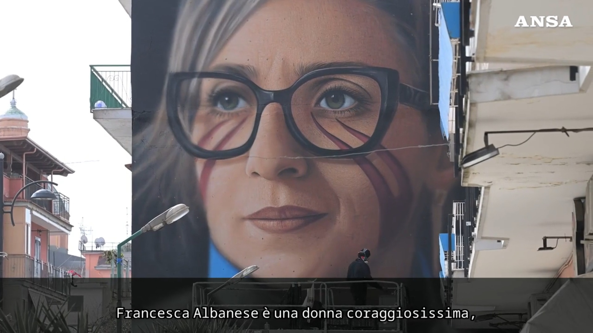 “Francesca Albanese – dice all’Ansa Ciro Cerullo in arte Jorit, impegnato negli ultimi ritocchi all’opera – è donna coraggiosissima schierata per la difesa dei bambini palestinesi e per questo viene attaccata ogni giorno dagli uomini più potenti della terra ed in particolar modo da tutta la lobby sionista di politici e giornalisti”. Sui social, appena si sono diffuse le prime immagini, si è scatenato il dibattito tra favorevoli e contrari, tra chi critica la scelta dell’artista e minaccia di deturpare l’opera e chi invece la difende. “Rivendico la scelta di aver reso omaggio a questa donna – replica Jorit – e anche se il murale ha attirato critiche e polemiche sono sempre contento quando una mia opera attiva un legittimo dibattito”. “Francesca – chiarisce Jorit – lavora per l’Onu, istituzione super partes, che anche se oggi ha perso la sua centralità ha sempre come missione quella di far valere il diritto internazionale al di là dei governi e della singole nazioni. Lei porta avanti lotte umanitarie, non posizioni di schieramenti politici e si impegna per ricordare quanto sta accadendo a Gaza. Un genocidio che va fermato e che ha portato alla morte 20mila bambini palestinesi”.