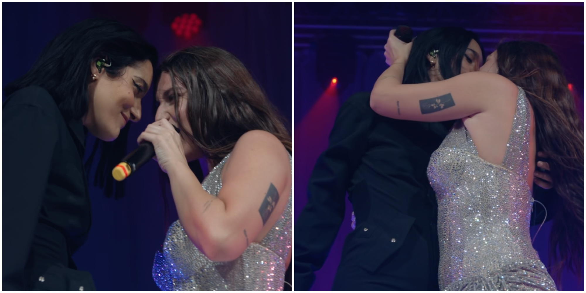 Il bacio sulla bocca tra Levante e Gaia Gozzi avvenuto durante la serata delle cover del Festival di Sanremo 2026 sulle note de “I Maschi” è stato replicato, tra l’entusiasmo generale del pubblico, ieri sera 18 aprile al Fabrique di Milano.
