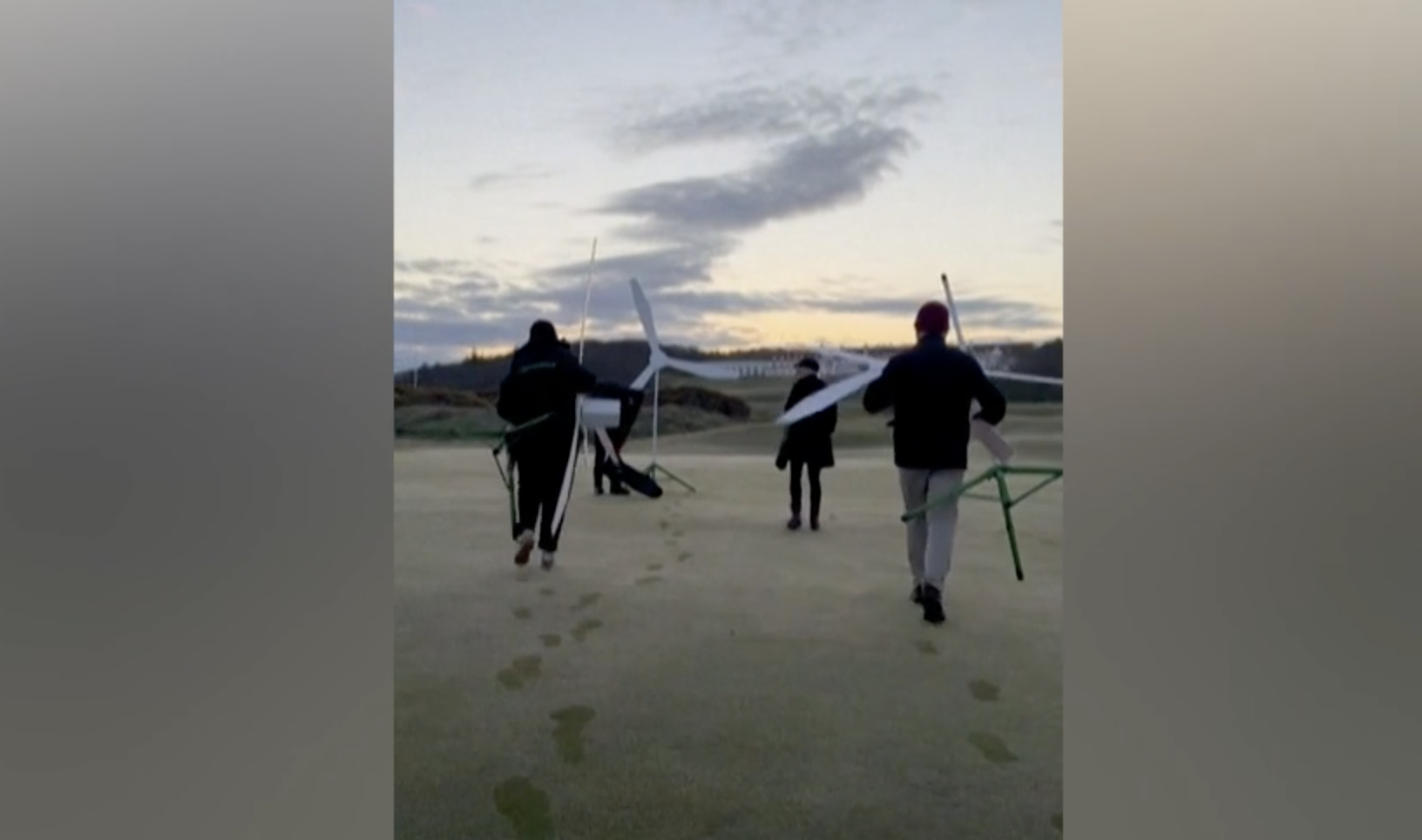 Un filmato diffuso da Greenpeace mostra degli attivisti che installano turbine eoliche su un green del campo da golf Trump Turnberry in Scozia. Il presidente degli Stati Uniti si è infatti lamentato a lungo del fatto che le pale eoliche rovinino il panorama e siano costose. Durante una precedente visita nel Regno Unito, Trump ha esortato il Paese a smettere di sovvenzionare questi “brutti mostri“.