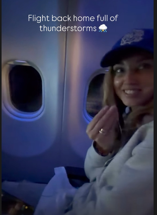 Dal finestrino del velivolo si nota il cielo notturno attraversato da fulmini e lampi frequenti. Nel video, Ferragni inquadra l’esterno per poi riportare l’obiettivo su di sé, mostrando un’espressione spaventata. La tensione del momento è stata confermata da una reazione esplicita e colorita a favore di telecamera (“Mi cago”). A fine viaggio, la cronaca social del rientro ha incluso anche il dettaglio di una macchia di caffè sui pantaloni, probabile conseguenza dei sobbalzi durante le turbolenze.