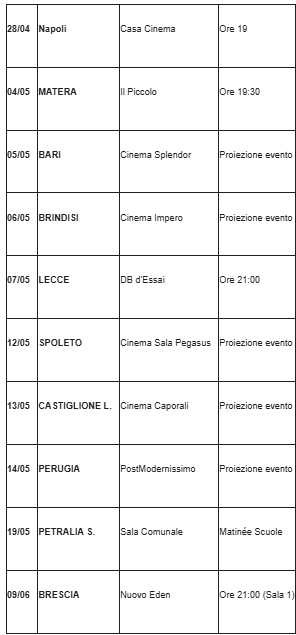 Molte di queste storie e di questi luoghi sono raccontati in un piccolo gioiello cinematografico, Storie di donne, uomini e comunità, il film di Paola Traverso e Vincenzo Franceschini prodotto da TCC Teatro Cooperativa, Il Gigante e Big Bang Production, presentato in anteprima a Roma lo scorso 13 aprile.