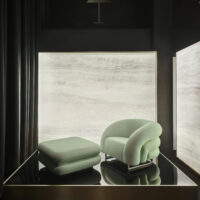 Il tessuto vive momenti di gloria, entra nel rivestimento interno degli armadi, illumina di giardini stampati la suite dedicata a Ken Scott da Mantero, prende forma nelle tende e nei rivestimenti di Luisa Beccaria: ombrelloni, tende da sole, cuscini. Nell’austera continuità dei greige, dei colori naturali, della pietra, del marmo, il colore si notano eccome….