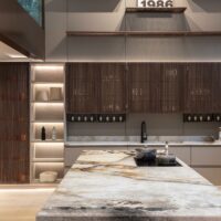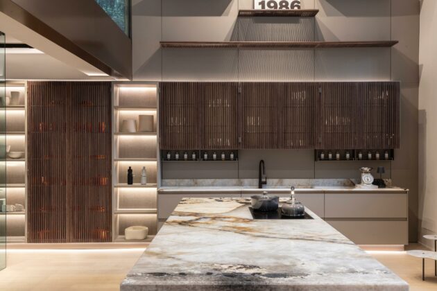 Appuntamento in cucina. Per l’archistar Antonio Citterio, “oggi la cucina deve essere bella perché è un luogo centrale dell’abitare contemporaneo. Il gas sta scomparendo, trionferà l’induzione. Nel ‘68 si cenava con pane e salame. Oggi le persone hanno l’esigenza di un ambiente ricercato dove il cibo è un rito. Dimmi che cucina hai e ti dirò chi sei“. Guai a parlare di angolo cottura, perciò. Le cucine status symbol hanno colonizzato il living, anzi l’hanno divorato e sono ovviamente invisibili (nel senso che non ci sono fuochi, apparentemente) come nella mostra di Elle Decor Italia a Palazzo Bovara: una cucina-laboratorio creata da Patricia Urquiola, altra archistar, con gli elettrodomestici di alta gamma del brand svizzero V Zug (coda infinita per entrare). L’isola centrale è un monolite scuro composto da vari volumi di pietra nera e onice viola. Questi elementi integrano il piano di cottura, e quello di lavoro, il tutto illuminato da una luce viola che brilla da sotto il bancone. Anche “Ornare”, brand brasiliano che celebra i suoi primi quarant’anni mette in mostra l’elegantissima cucina Timeless: piani di marmo, legno massello e ante ventilate creano un effetto molto interessante mentre l’area del lavello è enfatizzata da un pannello luminoso che aggiunge profondità allo spazio di lavoro. Durante la design week lo showroom è sato arricchito da sculture divertenti (come il finto cavolfiore) e opere d’arte, a conferma del grande cambiamento: la cucina non è il luogo nascosto del “servizio”, ma una chiesa dove si celebra il rito ormai quasi religioso del cibo. E si spiega il prezzo: anche 80mila euro.