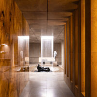 E sì, siamo tornati ai materiali naturali, un’esaltazione di marmo legno, acciaio, vetro, carta, stoffa. Magnifica la Casa di Marmo, un progetto firmato da Hannes Peer Architecture in collaborazione con Margraf che propone una riflessione radicale sull’uso della pietra in architettura. Non un semplice rivestimento, ma un ambiente interamente generato dal marmo: struttura, superficie, luce e atmosfera. Il marmo Santafiora definisce l’involucro con tonalità calde e compatte, espressione di una pietra estratta in Toscana, nella cava di Manciano. La sua struttura densa e la bassa porosità, unite alla resistenza al fuoco, agli shock termici e agli agenti atmosferici, ne attestano le elevate prestazioni tecniche, Onici, quarzi, agate e varietà traslucide si accendono grazie a un articolato progetto di illuminazione. Ci sono poi molti modi di intendere la materia. In “The Paper Log: Shell and Core”: si parte dal prototipo della carta plissé che serve alla realizzazione del famosissimo tessuto di Issey Miyake, per ricreare sedute e tavoli. Il progetto nasce da un’intuizione di Satoshi Kondo, uno dei direttori del Miyake Design Studio. Il punto di partenza è semplice quanto radicale: il recupero del Paper Log, (un rotolo di carta plissettata sottoprodotto del processo industriale di plissettatura, cifra distintiva del linguaggio Miyake), per dargli nuova vita.