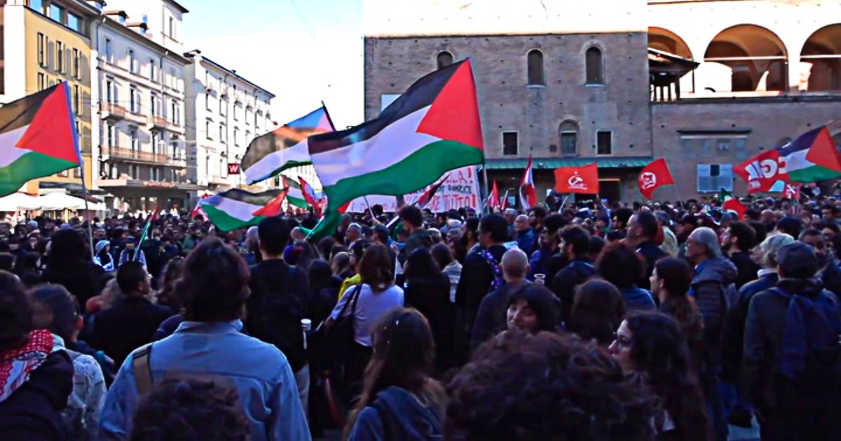 Bologna, la manifestazione in centro per la Flotilla: “Giù le mani”