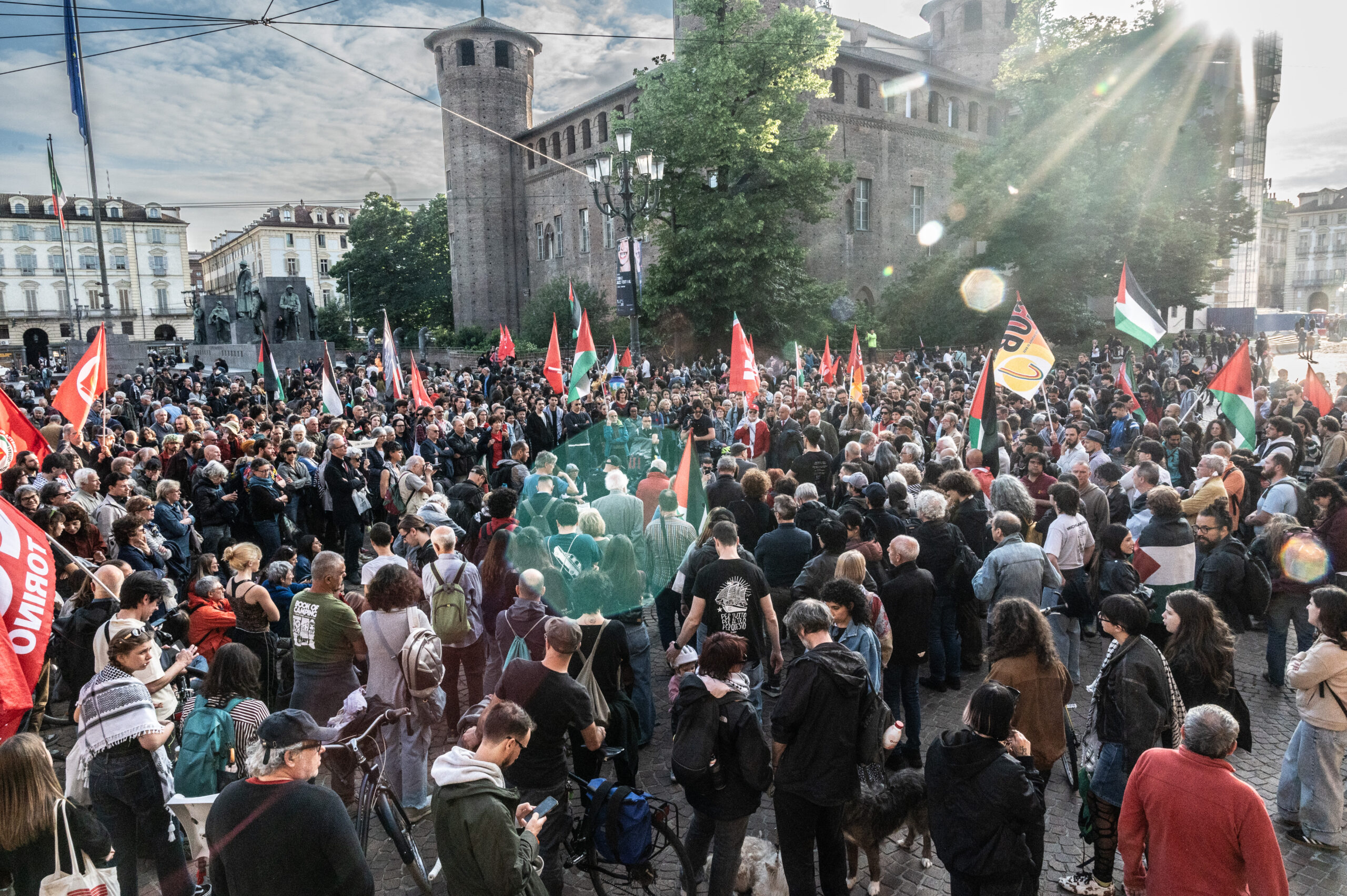 Il presidio organizzato a Torino in solidarietà con la Global Sumud Flotilla è diventato successivamente un corteo. Circa un migliaio le persone partite da piazza Castello. In testa c’è Adelmo Cervi, 82 anni, nipote di uno dei sette fratelli Cervi, fucilati dai fascisti nel dicembre 1943. “Non riusciremo a cambiare questa società – ha detto Cervi – se non manderemo a casa gli attuali governi. Ho mandato un messaggio alla Flotilla quando è partita per dire che ero con loro con il cuore perché era una impresa molto pericolosa sapendo con chi hanno a che fare. Qui non si parla solo di fascismo – ha sottolineato – ma è anche una questione di capitalismo e di imperialismo”.