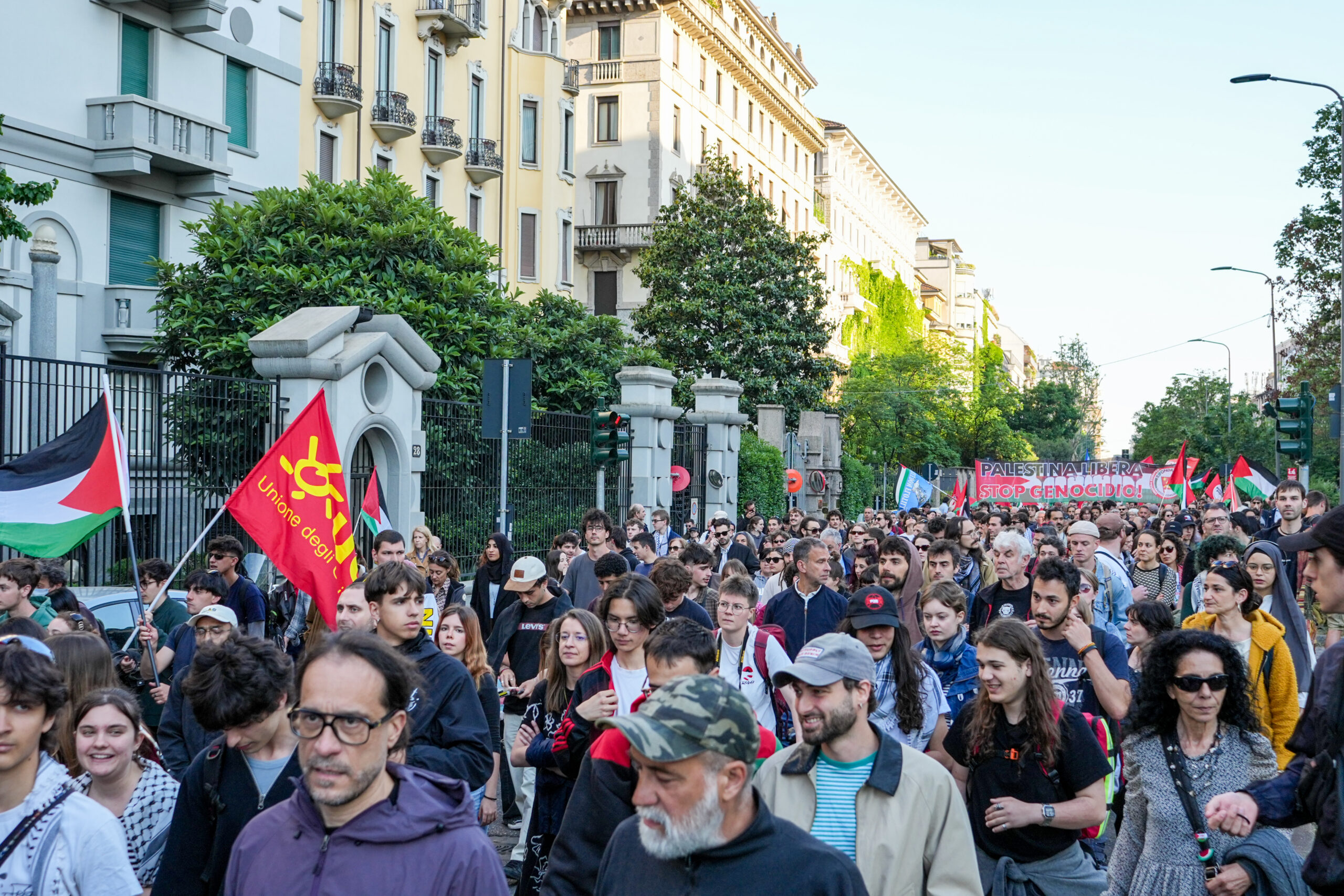 Il presidio davanti alla prefettura di Milano, in corso Monforte, in solidarietà con la Global Sumud Flotilla dopo il blocco di alcune navi al largo di Cipro in acque internazionali da parte della marina israeliana, si è trasformato in un corteo che attraversa le vie del centro. I manifestanti hanno proseguito su corso Buenos Aires per concludere in piazzale Loreto. Alcune migliaia di manifestanti hanno sfilato dietro lo striscione “Insorgiamo e blocchiamo tutto” al grido di “Palestina libera” e “E Milano lo sa da che parte stare”. La manifestazione si svolge senza incidenti, con un ingente schieramento di forze dell’ordine lungo il percorso.
