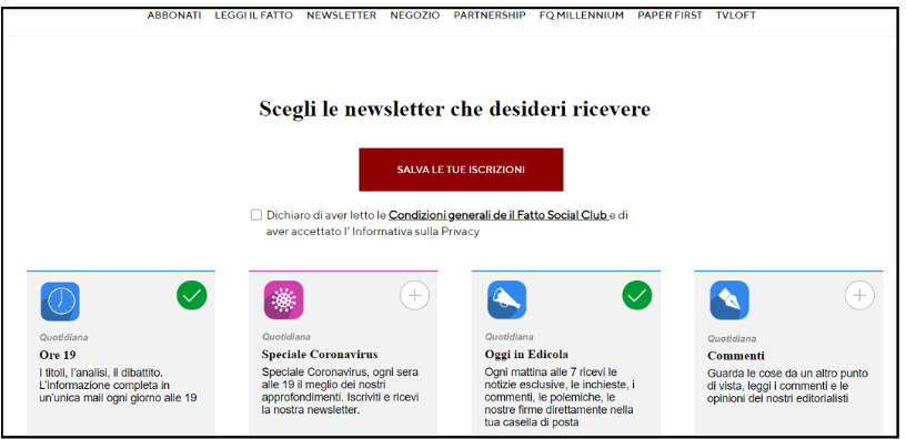 - Scegli le newsletter che desideri ricevere o quelle da disattivare.