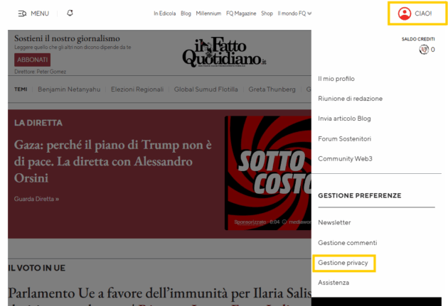 Per farlo, è necessario accedere alla Community premendo il pulsante “Accedi” in alto a destra e inserendo le stesse credenziali con le quali si accede al nostro sito www.ilfattoquotidiano.it.