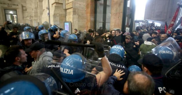 ITALIA, CORTEI PER GAZA, PARTECIPAZIONE E TENSIONI. A MILANO I MANIFESTANTI CERCANO DI ENTRARE ALLA STAZIONE E PARTE LA CARICA: 10 FERMATI E 60 AGENTI FERITI. A NAPOLI BRUCIATE FOTO DEI PREMIER NETANYAHU E MELONI. Grande partecipazione alla giornata dei cortei per Gaza; manifestazioni in tutta Italia, almeno 80 le iniziative in altrettante città. A Roma gli organizzatori rivendicano 20.000 persone alla marcia. Non sono mancati i momenti di tensione. A Milano una parte del corteo ha provato a sfondare il cordone di polizia che era all’ingresso della Stazione centrale. Gli agenti hanno risposto con una carica: nel tardo pomeriggio il bilancio era di 10 fermati e 60 agenti feriti. A Bologna la polizia ha cercato di sgombrare il casello autostradale usando idranti e lacrimogeni. A Marghera, dopo tre ore davanti al casello del porto commerciale, il corteo di almeno 15mila persone ha provato ad avanzare per accedere all’infrastruttura, la polizia ha aperto gli idranti. A Napoli invece gli attivisti sono riusciti ad occupare la stazione centrale, e un gruppo ha bruciato le foto del primo ministro israeliano Benjamin Netanyahu e della presidente del Consiglio Giorgia Meloni, chiedendo la cessazione degli accordi tra l’Italia e lo Stato di Israele. Per il ministro Matteo Salvini, lo sciopero generale rappresenta una “mobilitazione politica di sindacalisti di estrema sinistra”, mentre il ministro dell’Interno, Piantedosi, parla di “attacco deliberato alla polizia”. Sul Fatto di domani leggerete i particolari della giornata.