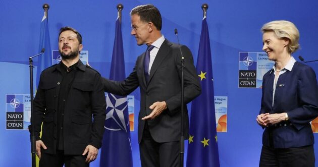 VERTICE NATO, SPESA MILITARE DAL 2 AL 5 PER CENTO DEL PIL: TUTTU CONCORDI TRANNE LA SPAGNA. “PROBABILE” INCOTRNO TRUMP-ZELENSKY. VON DER LEYEN: “RUSSIA ENTRO 5 ANNI TESTERÀ LE NOSTRE DIFESE”. Al vertice Nato in programma oggi e domani all’Aja (Olanda) sono tutti d’accordo, con l’eccezione della Spagna e Slovacchia: la spesa militare dei Paesi dell’Alleanza deve salire dal 2 al 5% del Pil, come chiesto da Trump. Anche l’Italia è allineata con la premier Meloni. Mentre l’Ucraina divide le due sponde dell’atlantico: Ue per il sostegno militare a Kiev, Trump propenso al dialogo con Putin. L’incontro tra il presidente Usa e Zelensky è “probabile”: nel caso, si discuterà di sanzioni alla Russia e sostegno bellico per l’Ucraina. Le richieste di Zelensky sono note: ingresso nella Nato e armi. Dalla sua parte c’è il segretario generale della Nato Mark Rutte: “Abbiamo ragione di pensare che per il 2025 avremo più aiuti militari dell’anno scorso, oltre 50 miliardi”, ha annunciato l’ex premier olandese. Al fianco di Zelensky ci sono anche Francia, Regno Unito e Germania (il cosiddetto formato E3). Macron, Starmer e Merz si sono riuniti all’Aja introno 18.15, prima dell’inizio del vertice. L’Europa da tempo predilige il riarmo alla diplomazia, convinta che l’esercito di Putin sia alle porte. “La Russia sarà in grado di mettere alla prova i nostri impegni di difesa entro i prossimi 5 anni”, ha dichiarato Ursula von der Leyen nel suo intervento all’Aja. Spalleggiata dal cancelliere tedesco: “Dobbiamo temere che la Russia voglia continuare la sua guerra oltre l’Ucraina”, ha dichiarato Merz, promettendo “l’esercito convenzionale più forte d’Europa”. Non tutti remano per il riarmo. Oggi a l’Aja, nel parlamento olandese, il leader M5s Giuseppe Conte ha tenuto la conferenza “No Rearm, no War”. Lo scopo è lanciare un coordinamento dei partiti progressisti europei contro il riarmo. Sul Fatto di domani vi racconteremo l’incontro dei leader Nato e le proteste contro il riarmo.