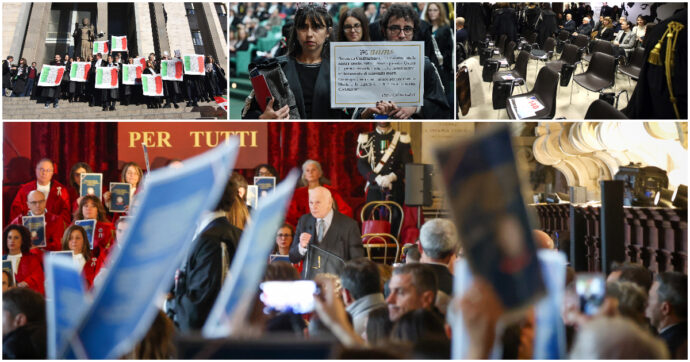 ANNO GIUDIZIARIO, LE TOGHE PROTESTANO IN TUTTA ITALIA. NAPOLI, PARLA NORDIO E I PM LASCIANO LA SALA. Nelle sedi di Corte d’Appello giudici e pm hanno manifestato contro la separazione delle carriere (“Mina la democrazia”, ha detto nel suo intervento Manuela Andretta, presidente della sezione milanese dell’Anm) indossando la toga e una coccarda tricolore. Come deciso dall’Associazione nazionale magistrati, il sindacato delle toghe,, tutti hanno lasciato le cerimonie all’intervento del rappresentante del governo. A Milano si cita Francesco Saverio Borrelli, procuratore capo ai tempi di Berlusconi: “Resistere, resistere, resistere”. A Napoli, dove si è fatta notare l’assenza del procuratore capo Nicola Gratteri, i magistrati hanno prima esposto la Costituzione mentre risuonavano le note dell’inno di Mameli, quindi lasciato l’aula durante l’intervento del ministro della Giustizia Carlo Nordio. La maggioranza fa quadrato. “Nessuno può cancellare le decisioni del Parlamento”, ha detto il presidente del Senato Ignazio La Russa. “Di pessimo gusto uscire mentre parla un membro del governo”, il commento del vicepremier Matteo Salvini. Sul Fatto di domani leggerete le ultime novità su questo fronte politico e giudiziario.