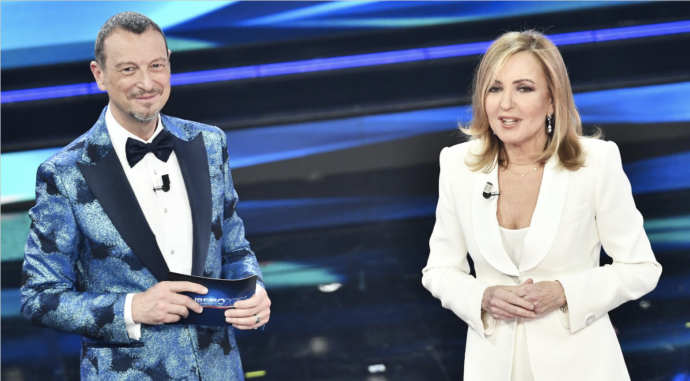 “Io non suono niente”. Egoimovic: “Chiedo a Zlatan: ha detto che puoi restare”. “Regola numero cinque: c’è troppa gente, rischiamo squalifica. Lasciamo solo tamburi e ragazze, tutti altri via”. “Orchestra all’ingresso. Cantanti in salotto. Ragazze con Zlatan. Tu, Ama, in cucina che mi fai caffè. Achille Lauro lo mettiamo in garage che controlla le macchine così i ladri non entrano e non rubano che hanno paura di lui”. Ma no, “le ragazze poi vengono con me”. “Si guarda alle mogli e non alle amanti”. Ragazze, se non volete finire a casa di Zlatan o Achille, “Studiate fino alle lacrime, lavorate fino all’indipendenza”. O fate un incidente in motorino a 13 anni e guardate Sanremo con Walter e Goffredo. Che poi “Roma è bellissima in agosto”, ma alla fine comunque ti assumono al Corriere della Sera e salta fuori che la citazione dei Pooh è una canzone per te (anyway, se proprio fa caldo c’è Capalbio). Dopo vai a Repubblica e balli con Luca Barbarossa. “Ribellatevi sempre. Tanto non andremo mai bene, ci criticheranno sempre, ci umilieranno, ci metteranno le mani addosso, non saremo mai perfette, non andremo mai bene ai mariti, padri, fratelli”. “Nonne, mamme, figlie”, sorelle d’Italia. La banda della Marina Militare. La banda della polizia. Il tricolore. “Sono emozionatissima”. “Vorrei ringraziare”. Baciami sulla bocca, balliamo la lambada. I fiori a me e domani a te. Cyrano e il monologo da baci Perugina: “Lo sapevi che quando ci baciamo usiamo 34 muscoli facciali? Il bacio è l’unica azione che l’essere umano compie in cui sono coinvolti tutti e 5 i sensi”.