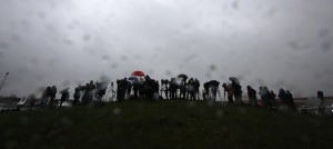 Journalists work near the scene of a hostage taking at an industrial zone in Dammartin-en-Goele, northeast of Paris January 9, 2015. The two main suspects in the weekly satirical newspaper Charlie Hebdo killings were sighted on Friday in the northern French town of Dammartin-en-Goele where at least one person had been taken hostage, a police source said. REUTERS/Eric Gaillard (FRANCE – Tags: CRIME LAW MILITARY MEDIA)