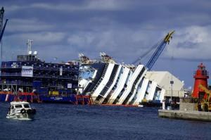 LaPresse//LaRocca16/09/2013 Isola del Giglio CronacaCosta Concordia, le operazioni di rotazioneNella foto: inizia ad affiorare la parte sommersa della Costa Concordia LaPresse//LaRocca2013 September, 16Island of GiglioNewsAn international team of engineers try a never-before attempted strategy to right the luxury linerIn the photo: the submerged part of the Costa Concordia begins to surface