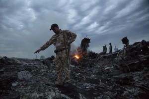 People walk amongst the debris at the crash site of a passenger plane near the village of Grabovo, Ukraine, Thursday, July 17, 2014. Ukraine said a passenger plane carrying 295 people was shot down Thursday as it flew over the country, and both the government and the pro-Russia separatists fighting in the region denied any responsibility for downing the plane. (AP Photo/Dmitry Lovetsky)