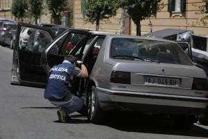 Roma, la polizia scientifica presso la presunta auto dell’agguato