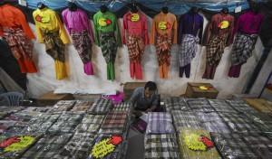 A Muslim man sells traditional Malay outfit and kain pelikat (sarong) for men during the Muslim holy fasting month of Ramadan in Kuala Lumpur, Malaysia, Tuesday, July. 1, 2014. During Ramadan, the holiest month in Islamic calendar, Muslims refrain from eating, drinking, smoking and sex from dawn to dusk. (AP Photo)